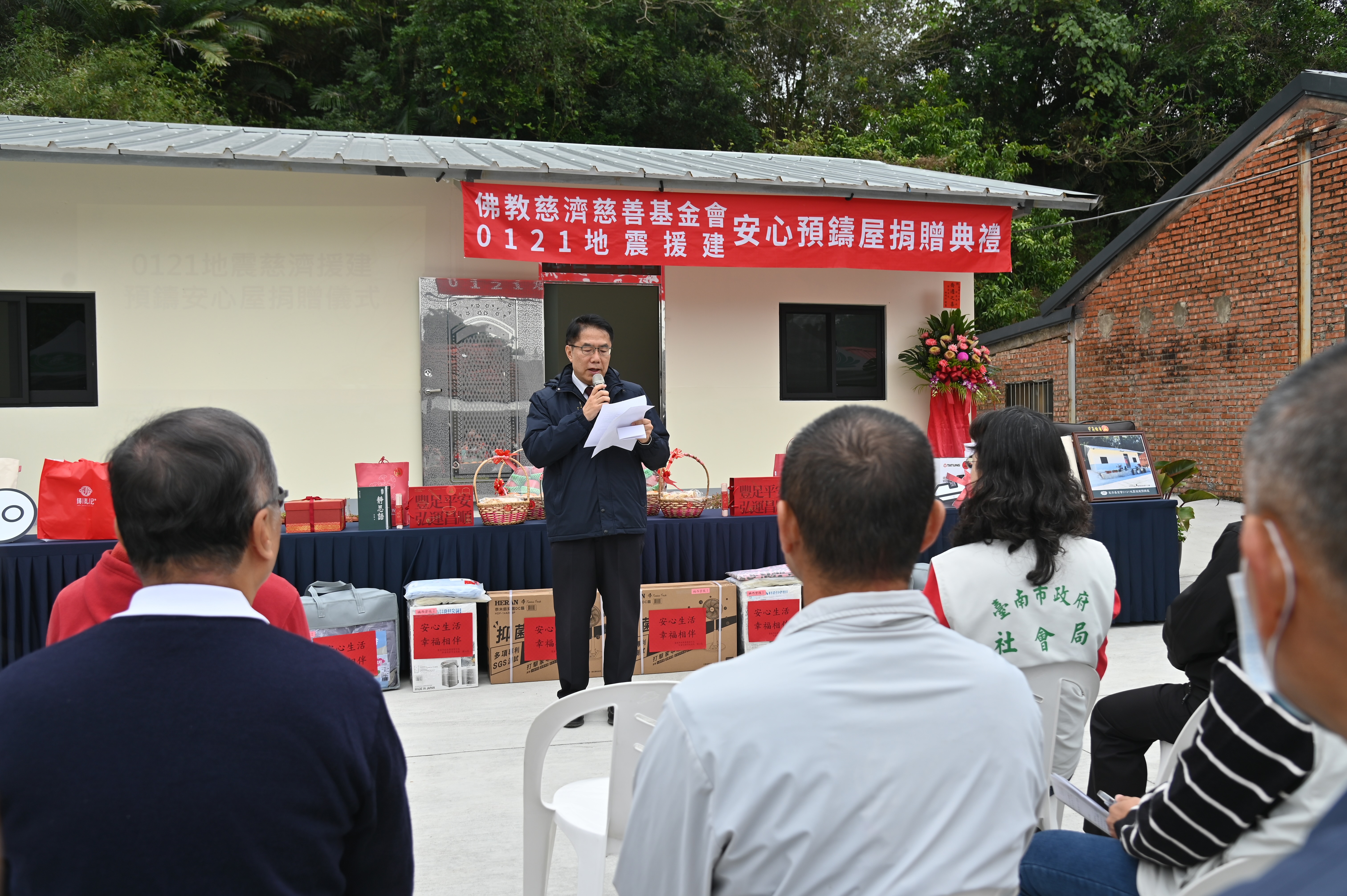 災後初期,慈濟基金會副總執行長林碧玉即帶領營建團隊深入楠西、玉井等受災區域,實地勘查、傾聽需求。交屋當日,她透過視訊向現場鄉親問候冷不冷?並轉達證嚴上人的關懷與祝福:「上人非常關心各位,感恩市長的協助,也感恩楊智欽師兄帶領團隊挺進山區,完成安心屋,讓鄉親不再擔心地震。」