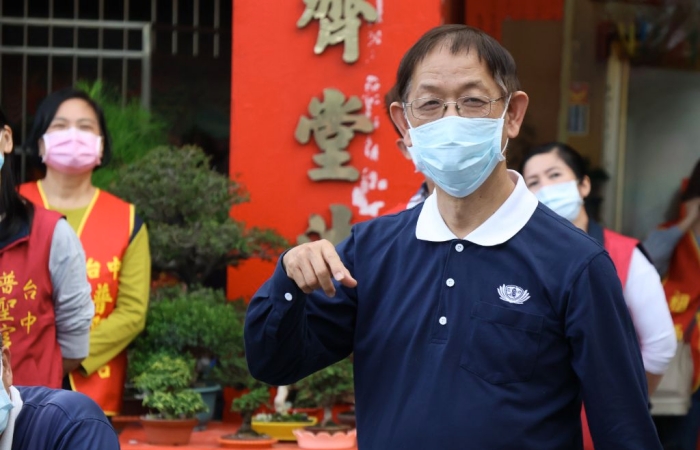 「是我自己憨慢(臺語,笨拙)做生意,又遇到疫情三年多⋯⋯」住在南屯的陳阿公生意受疫情影響而結束,但他不怨天尤人:「慈濟來辦活動,跟大家結善緣,也能宣導吃素食。吃素就是不殺生,也是慈悲心,不與眾生結惡緣。陳阿公一週內會到二、三天到普聖宮拜拜,順便領愛心便當。收到慈濟祝福的陳阿公喜悅溢於言表。