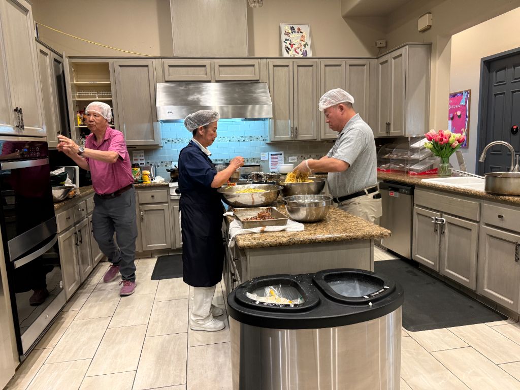 這分關懷,也體現在對細節的堅持上。2026年3月25日,香積志工梁雲屏、郭伊樺及林秋蘭等人,自備廚具與食材,帶領團隊製作炒飯與春捲。從食材的清洗切割,到烹煮後的細心分裝,整個流程井然有序,展現高度默契。餐點完成後,志工隨即將廚房清潔復原,並將空間留給家屬安心休息,體現了尊重與體貼。這份細膩的付出,讓這頓午餐不僅是生理的補給,更是心靈的慰藉。