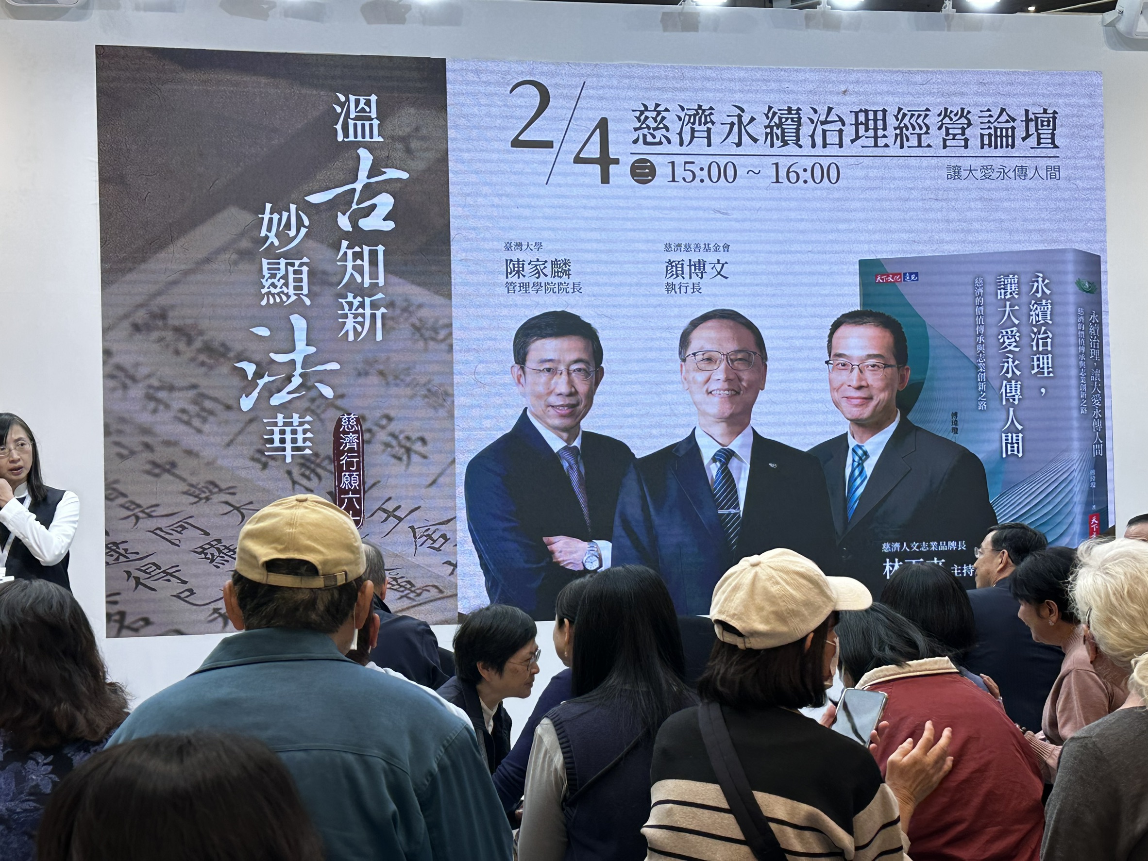 為期6天的書展期間,慈濟策劃超過20場跨界講座,涵蓋心靈、醫療、藝術、永續與教育。從「善,最好的禮物」心靈對談,到醫師分享用愛翻轉病患人生的真實故事;從回顧慈濟行善足跡遍及139國的出版成果,到青年、親子與創作世代的交流分享,讓法華精神不只是經文,更成為可實踐、可延續的生活智慧。