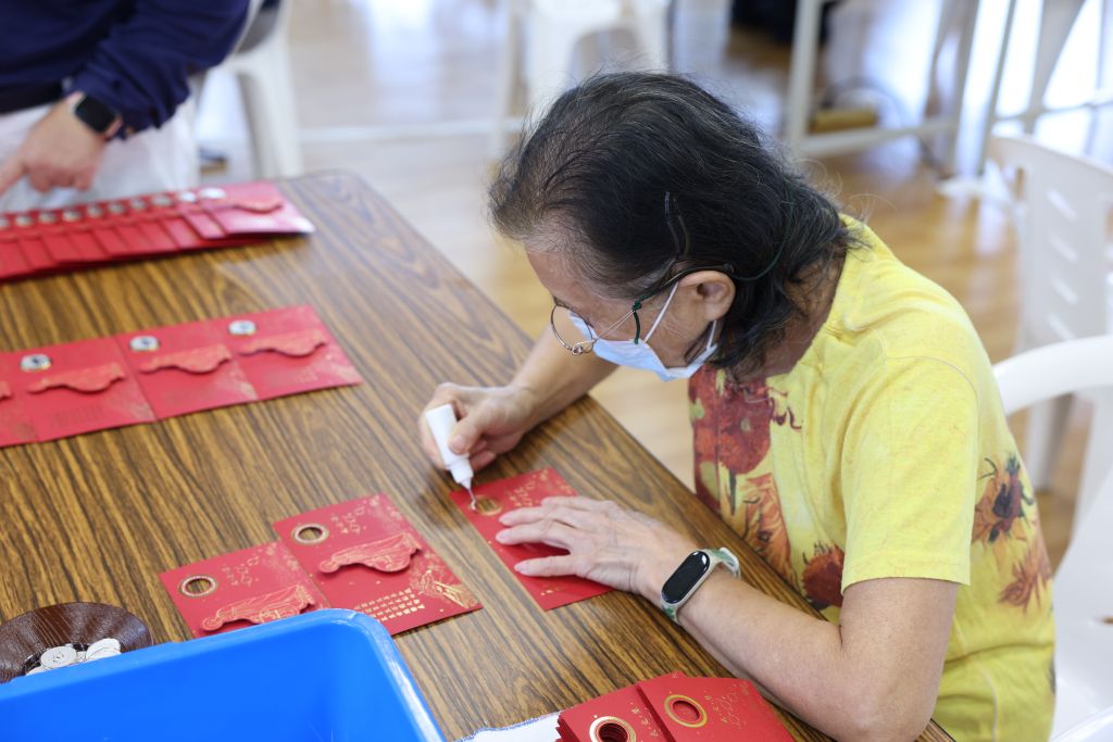 製作福慧紅包的工序,從摺黏W型小紙卡、黏貼宇宙大覺者的立體紙雕、稻穀、點膠嵌入金幣再按壓等等,每個細節都是環環相扣,都要用極高的細心及耐心,才能讓成品圓滿完成零誤差。志工王麗華說:「儘管過程辛苦且檢查環節非常累人,但最終被我們成功做出了,成品合格率更是大幅增加,讓我和種子都感到非常欣慰。」