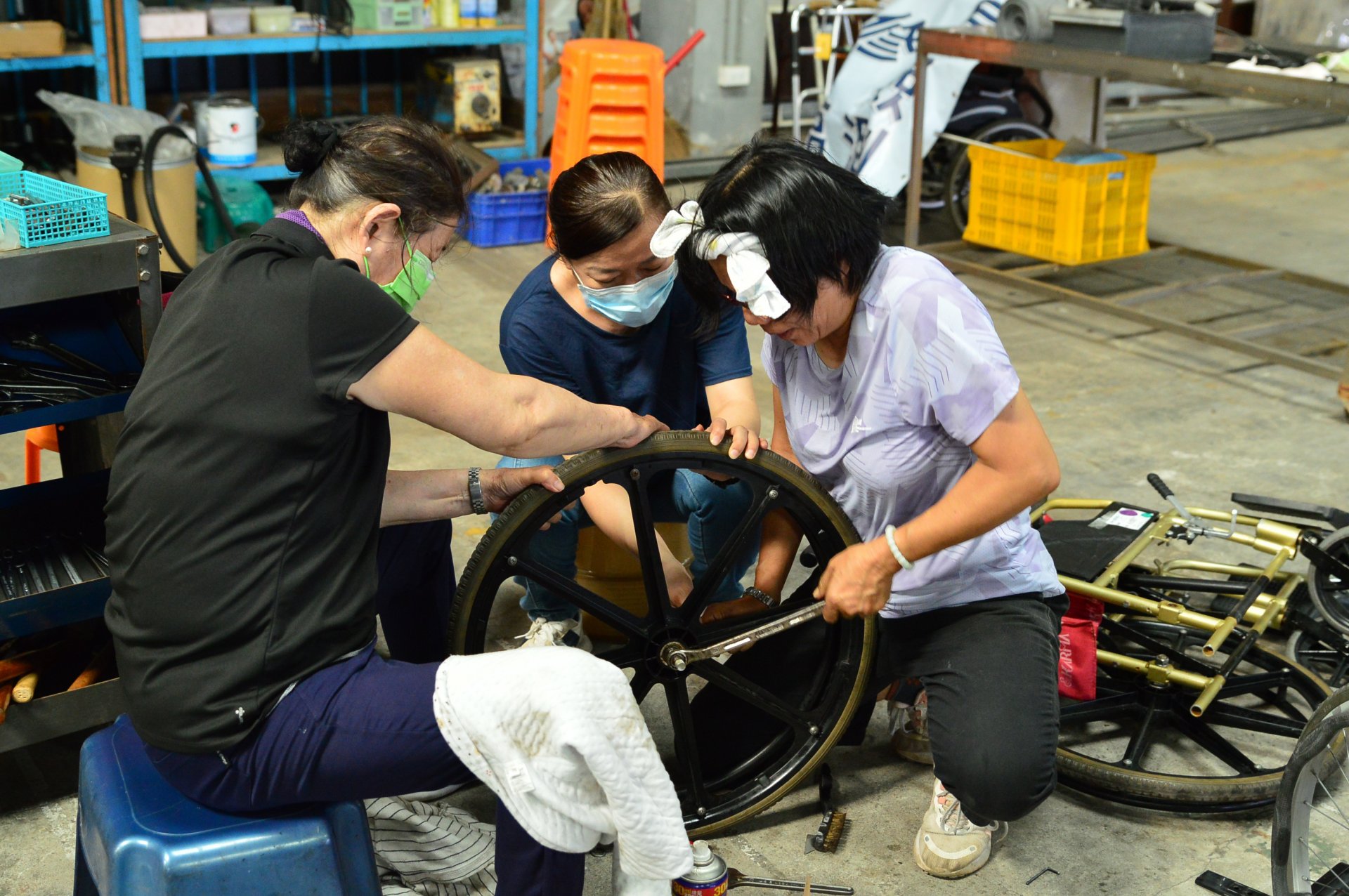 如今,后里聯絡處再度承擔重任,歷經一年多籌備,修繕屋頂、整建地板及增設倉儲與消毒設備,其中的七百坪空間,煥然一新,轉身為大中區輔具運作中心,成為中彰投各社區輔具平臺的後勤倉儲,也是鄰近學校與企業實踐服務的教育場域。