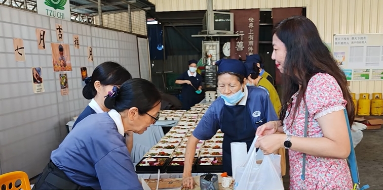 義賣所得用於吉蘭丹靜思堂建設基金,志工發心投入,推廣素食也凝聚善款。志工林惠明表示:「最主要就是告訴大家,其實七月是吉祥月,要用正信普度,救倒懸,而不是以宰殺來祭祀。」志工葉雪美則說:「每天一百個便當,所得捐給慈濟建設基金,很感恩有機會在這裡付出。」