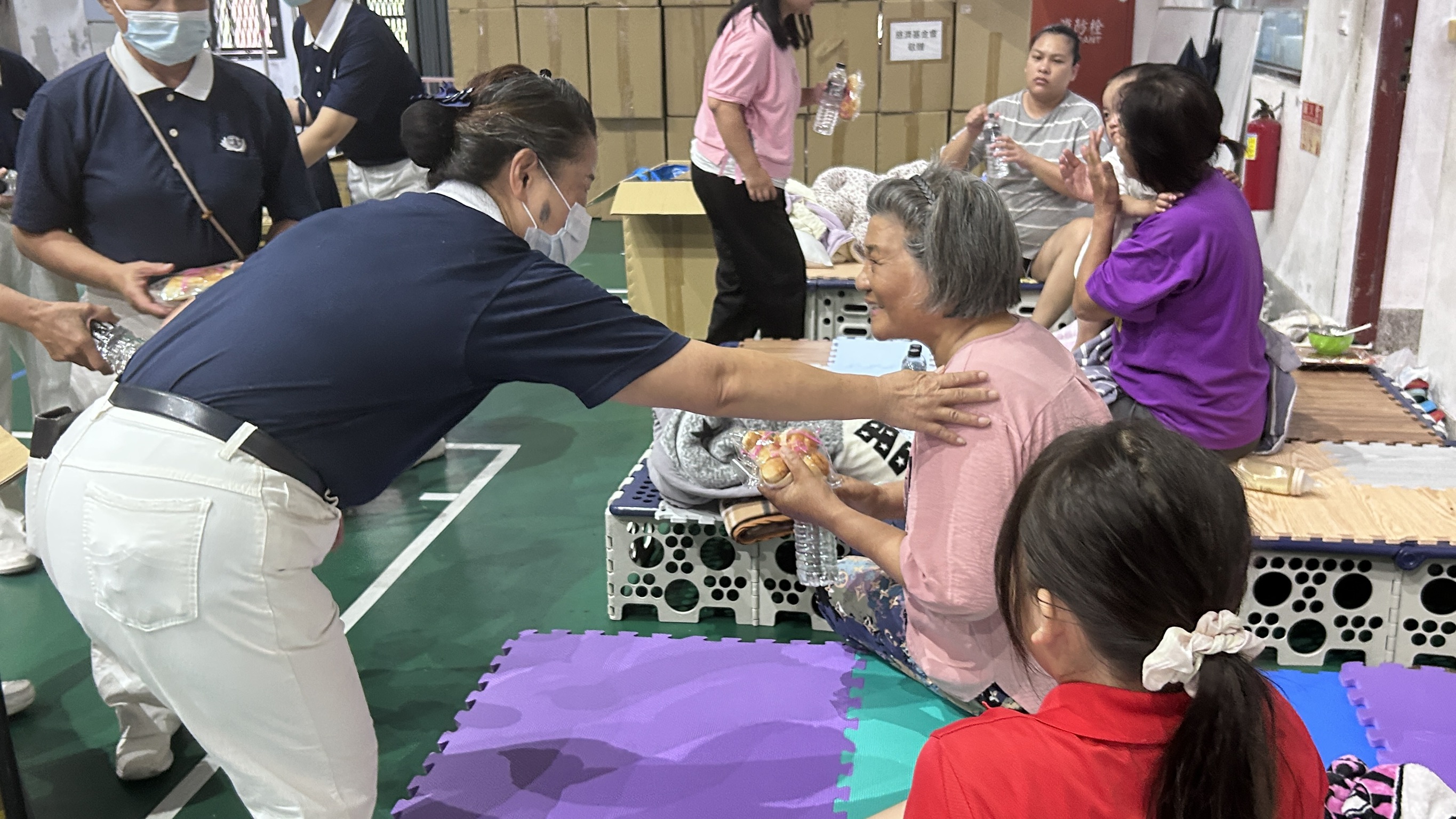 光復、瑞穗地區的志工今(二十二)日下午即攜帶麵包、礦泉水,前往光復高職,慰問撤離民眾,光復鄉已借出兩百三十張福慧床,協助災民安置與休息,確保避難期間生活基本需求。