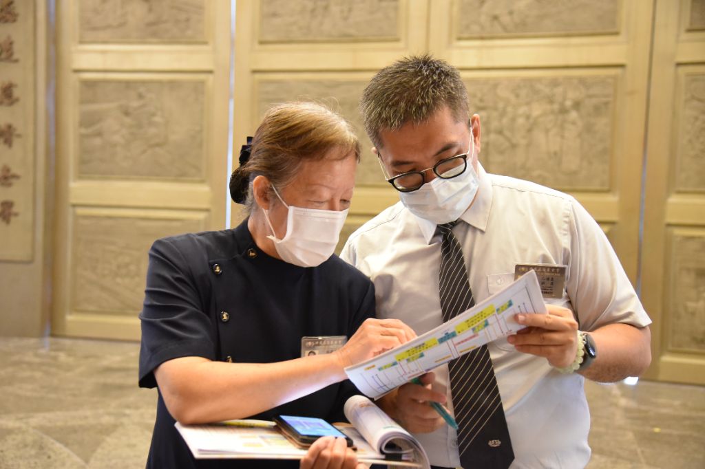 課務團隊以首「習」的謙卑心面對這次的任務,自九月起,課務長徐曉琪、邱博義即與各區志工透過會議多次研討,從課程設計、流程動線到細節確認,每一個環節都力求周全。29日當天,課務組完成地標貼設後,機動組立刻補位,協助桌椅調整、動線優化,行雲流水般的默契,展現出「合和互協」的最佳實踐。
