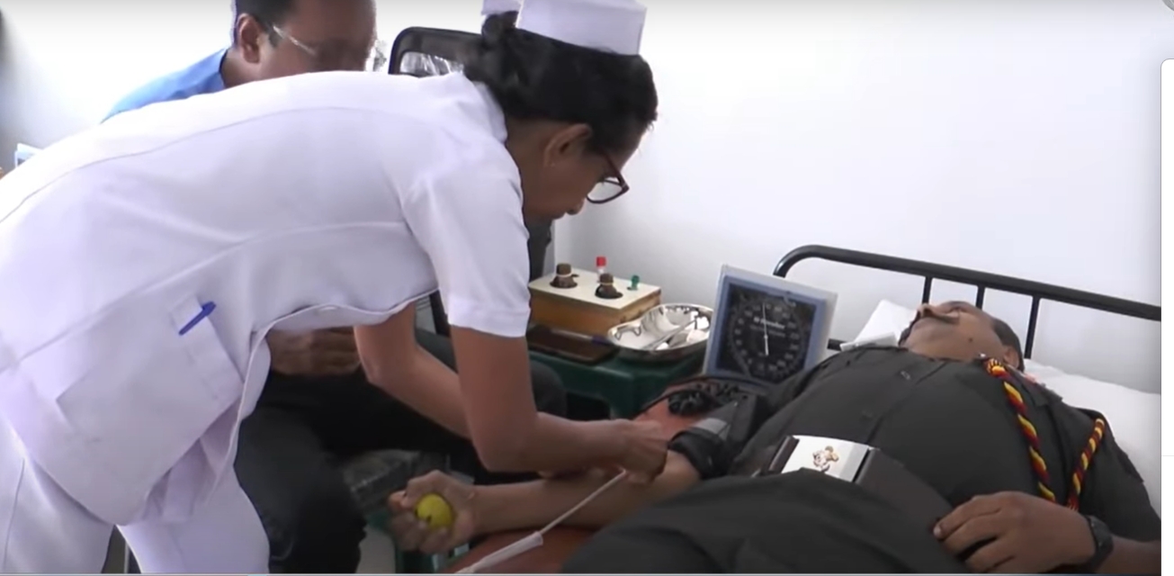 除了食物與飲水,洪災也使當地血庫急劇下降,醫療量能面臨壓力。慈濟志工隨即與國防大學附設醫院(UHKDU)合作,在可倫坡緊急舉辦捐血活動,成功募集 112 袋血液,為醫療體系注入迫切所需的補給。UHKDU 的佩雷拉醫師感謝慈濟迅速回應請求,並讚歎志工的熱忱與效率。前來參與的阿努拉中士也表示,慈濟在短短一兩天內完成動員,十分難得。
