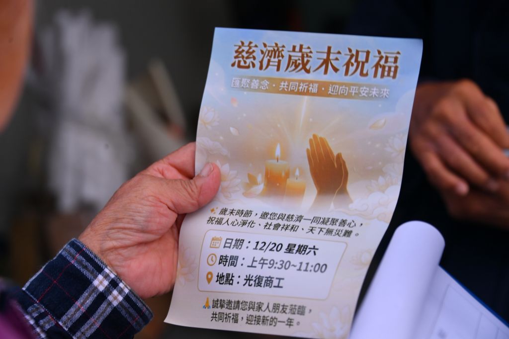 儘管部分住家仍在修繕中,鄉親的熱情與感謝卻不減。一句「慈濟幫很大忙」,道出風雨過後最真誠的人情溫度。最終超過700位鄉親允諾出席,期待在祈福會中,為自己、家人與這片土地,共同祈願平安光明的未來。