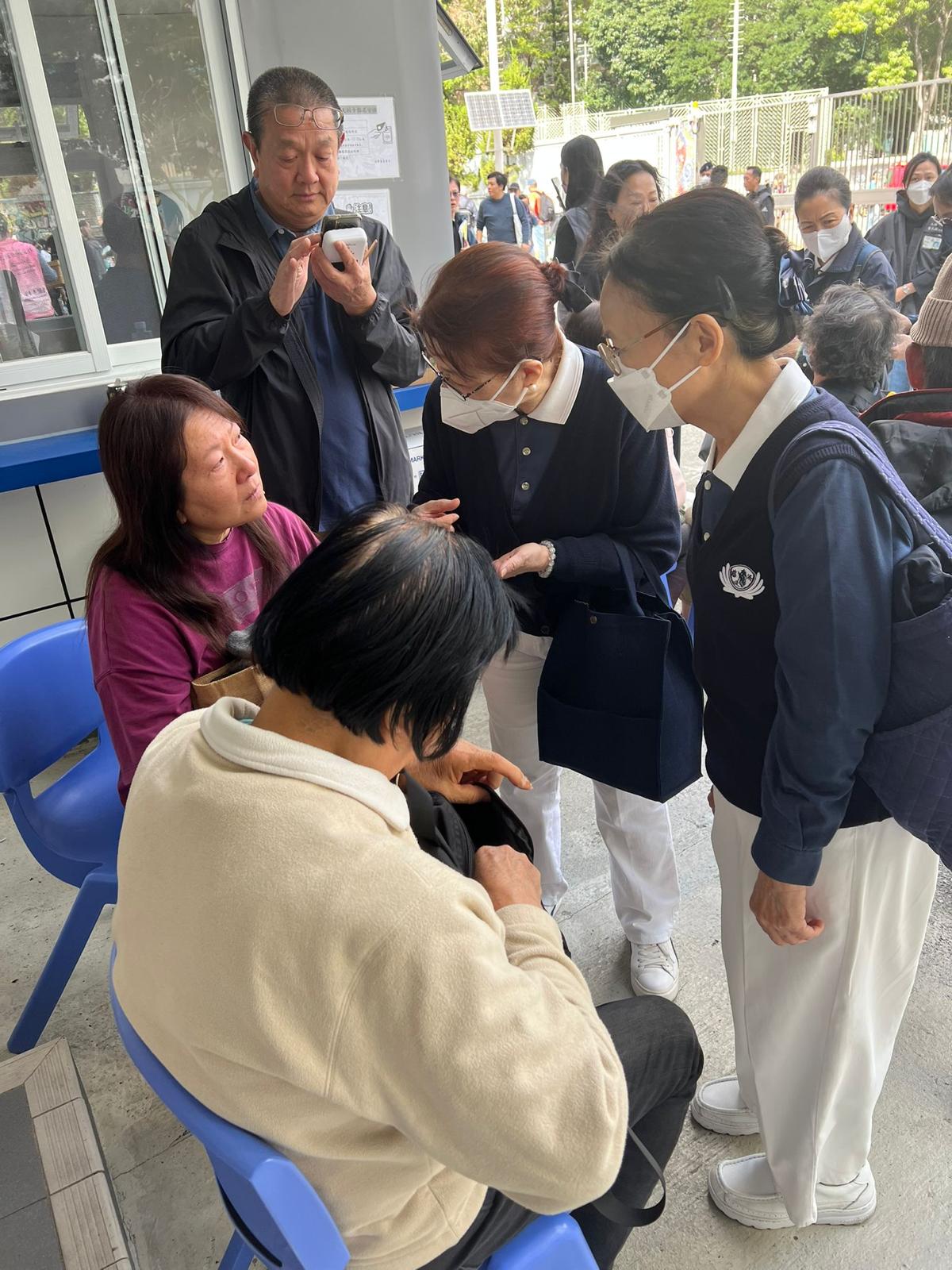 災後第一時間,香港慈濟志工啟動關懷行動,前往大埔宏福邨外圍勘察。警方封鎖區域無法接近,但仍能見到黑煙持續竄出、空氣中瀰漫焦味。志工在安全範圍陪伴周邊受影響居民,並以祈禱與陪伴穩定人心,以愛接力、即時關懷,用最溫柔的力量,陪伴香港度過苦難與惶恐。