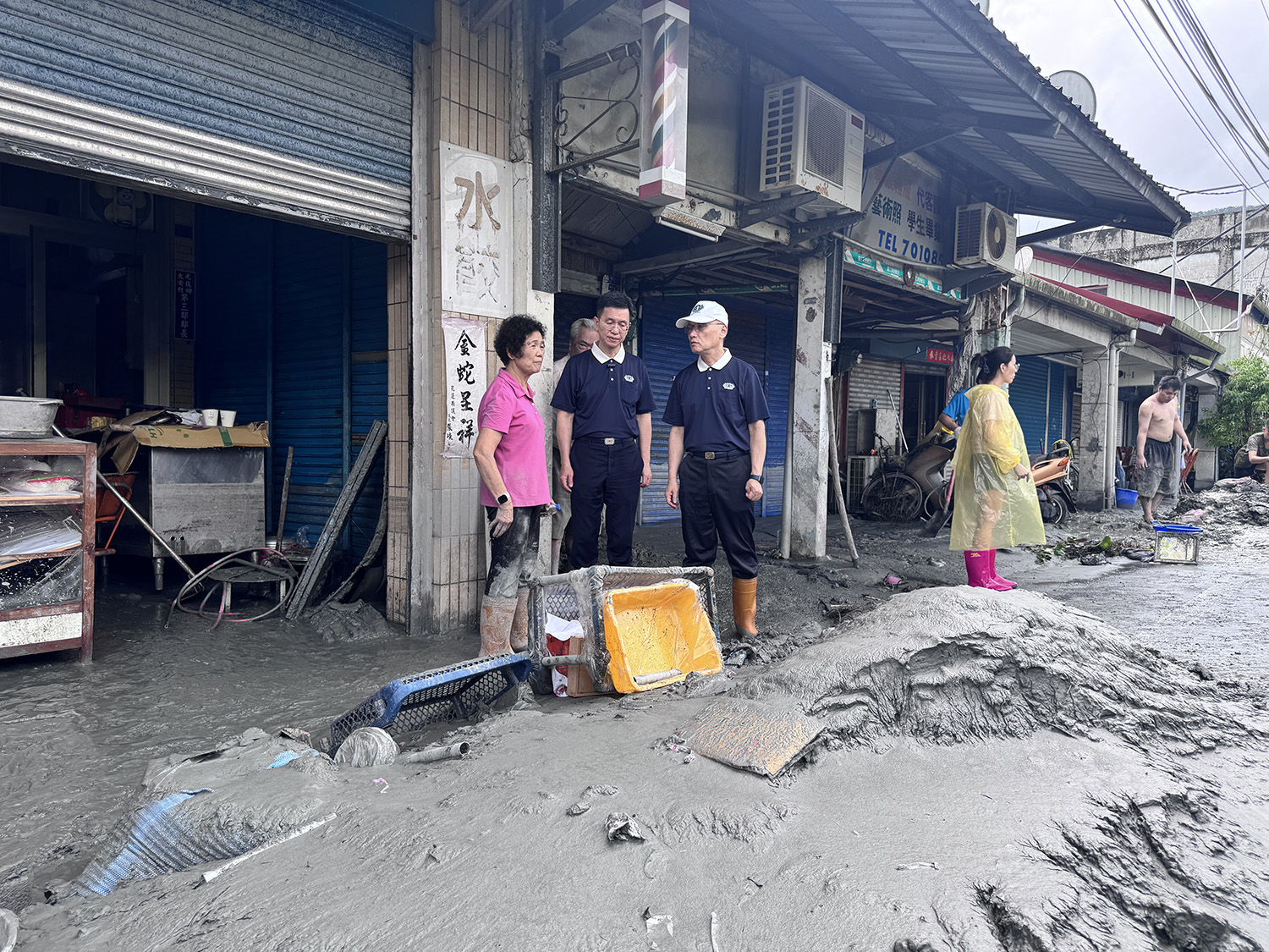 慈濟慈善事業基金會執行長顏博文下午到光復火車站前的住家進行勘災工作,民眾看到慈濟人的身影,紛紛訴說溢堤時的害怕,以及淤泥難清理的狀況。「看到大家開始跑出去,泥流一下子就到,非常的快,門來不及關。不知道怎麼處理這些土。」「這個(淤泥)太重了,這個很難清,要機器來推。現在沒有水,推不動。」