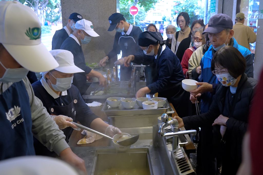 流程雖繁複,志工潘淑玲卻滿心歡喜:「希望每位家人除了領到上人的祝福,也能吃到一碗暖胃又暖心的麵。」許多會眾嚐過後感動地說:「怎麼這麼好吃!」她笑著回應,因為「愛」放進去了,大家自然感受得到。