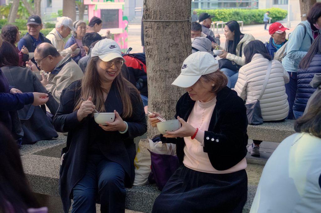冷風中,許多人坐在戶外公園,捧著熱騰騰的平安麵,成了歲末最溫暖的風景。會眾王惠秋分享,她透過學習大提琴療癒喪親之痛,在慈濟這個充滿愛的地方,她不僅用音樂與天上的父親對話,更邀約家人一同前來感受溫暖。她感佩上人一念初心,凝聚眾人成就大愛,並推薦家人參觀二樓的「上人館」,重溫慈濟走過一甲子的足跡。