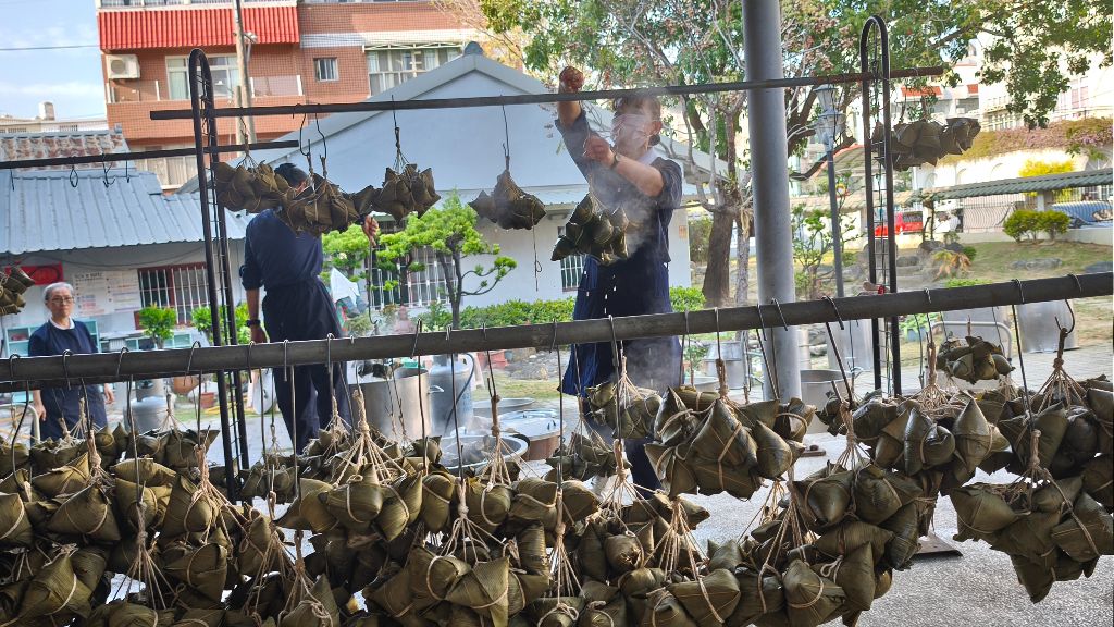 為了3千顆愛心粽,來自橋頭、燕巢、梓官各地的包粽高手齊聚一堂,展現精湛手藝。志工陳美珠在清洗粽葉時分享:「這清洗的過程就像在洗自己的心念,每一個心念都能檢視、擦洗,心就純淨了!」從洗米、炒料到包裹祝福,每一道工序都灌注了志工們最誠摯的心意。而那碗由十樣食材熬煮的「十全十美」蔬菜羹,更是香積志工陳金鳳的拿手絕活,溫暖了每一位來賓的胃與心。