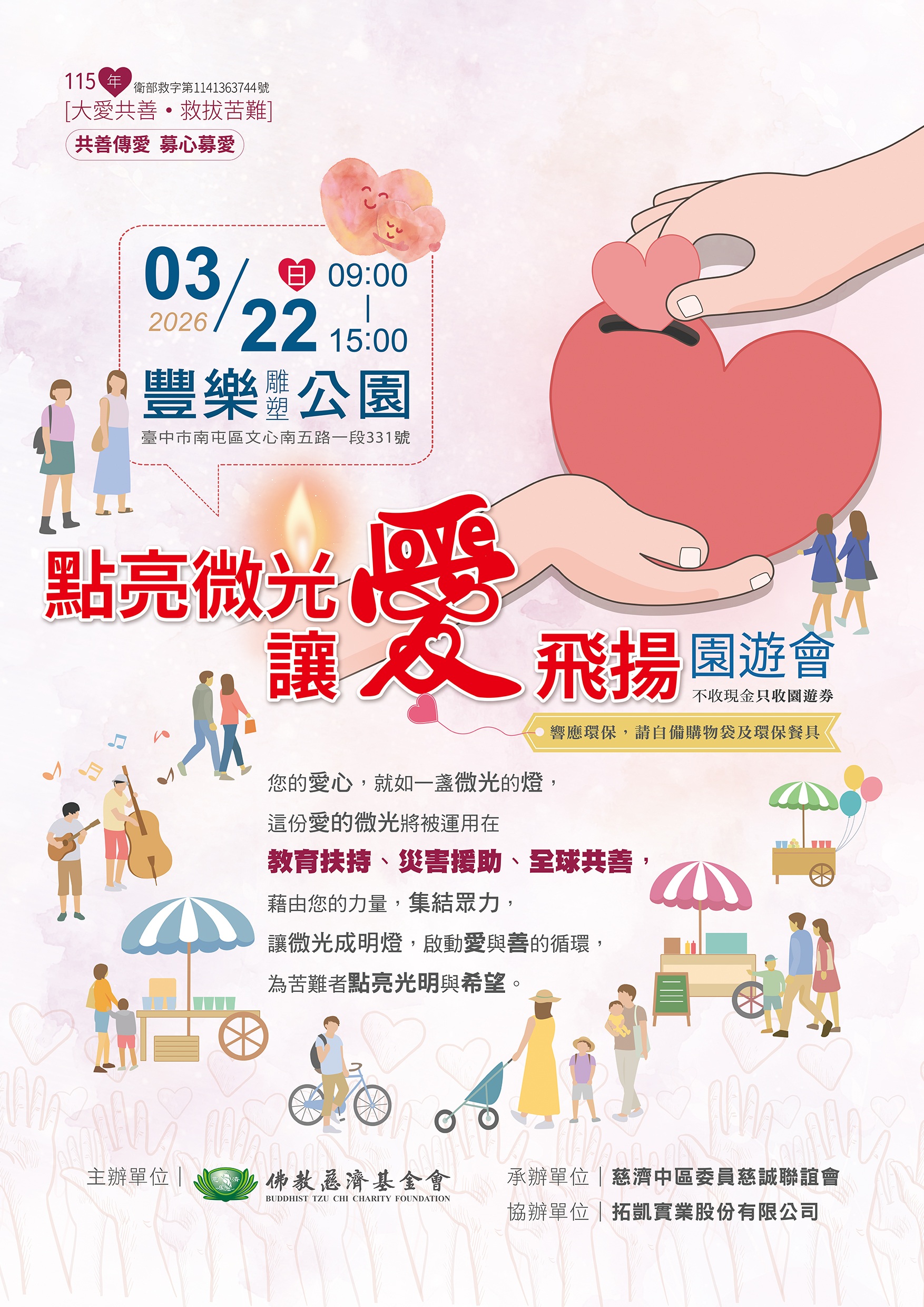 三月在臺中,慈濟基金會邀您,一起聚微光: